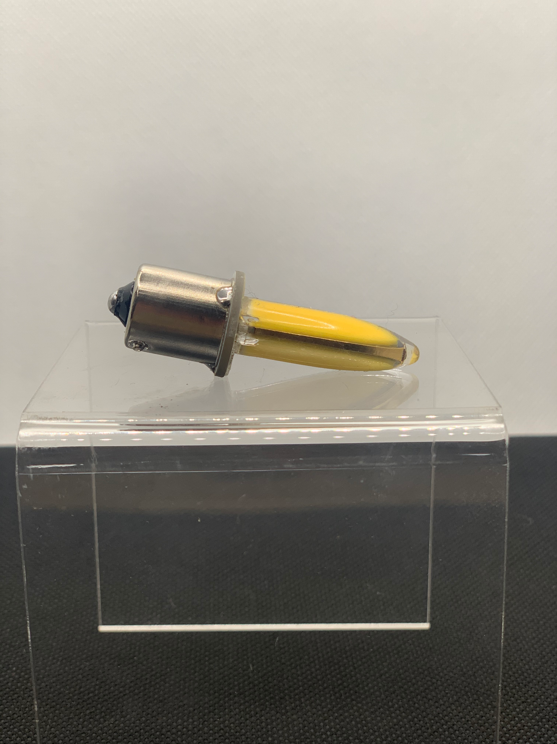 This is our new addition to our current bulb line. This amazing little bulb is fluorescent and comes in at 400 lumens that grab the attention!! Its new sleek design optimizes the light and helps reduce the normal overheating problems that happen in older style bulbs. This new bulb will be a go to for 1156 bulb replacements for sure. 9-30v. 1156 base.